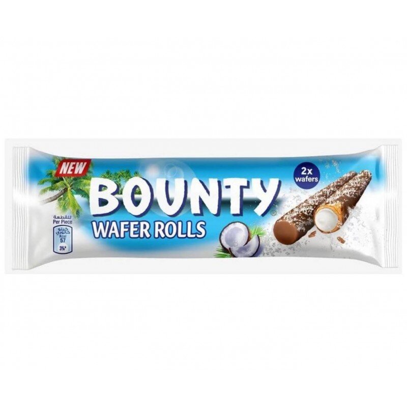 Prova subito il nuovissimo Bounty Wafer Rolls. Questo snack farà impazzire tutti i più golosi grazie alla sua croccantezza, data dai wafer e al suo mix dolce dato dal cocco e dal cioccolato. Ogni rotolo ti farà innamorare. Provalo subito!
