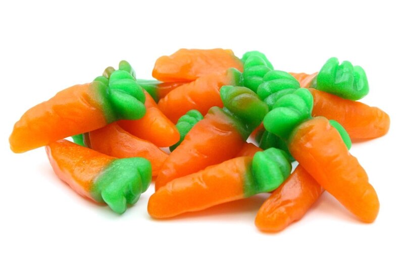 Carote ,caramelle gommose lucide a forma di carota gusto arancia. Bellissima e simpaticissima caramella gommosa che crea dipendenza dal primo morso grazie alla sua consistenza e al sapore intenso di agrumi. Caramelle gommose sfuse in sacchetto da 100gr.