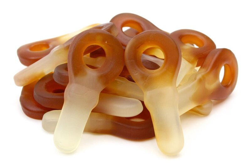 Ciucci cola Gelco caramelle gommose sfuse . Gommosi a forma di ciuccio gusto cola. Senza glutine senza coloranti artificiali.