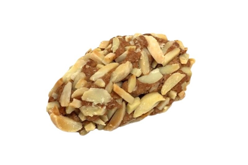 Cornetti di pasta di mandorle con cioccolato, lamelle e granella di mandorle. Paste di mandorla fatte a mano utilizzando materie prime di qualita' e ingredienti tipici della tradizione siciliana. Confezione 200
