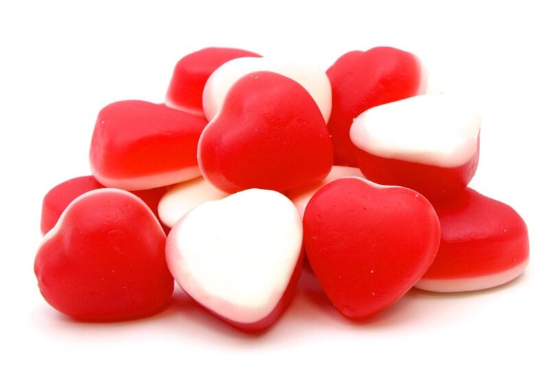 Cuori Panna e Fragola Ravazzi caramelle gommose sfuse in confezione da 100gr . Gommosi ripieni a forma di cuoricini bianco rosso gusto panna e fragola.