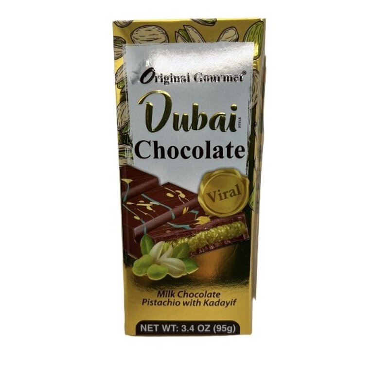 Scopri l'esperienza irresistibile della barretta Gourmet Dubai Chocolate: un raffinato cioccolato al latte che racchiude una cremosa sorpresa al suo interno. La combinazione perfetta di crema di pistacchio e Kadayif rende ogni morso un'esplosione di sapori esotici e di pura dolcezza. Questa delizia è pensata per chi ama farsi sorprendere dalle note delicate del cioccolato e dalla croccantezza inaspettata del Kadayif. Da gustare in solitudine come piccolo lusso quotidiano o da condividere con chi apprezza le cose buone della vita.
