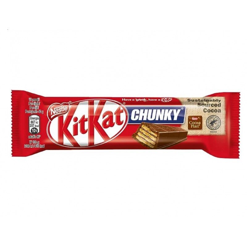 Ingredienti: Zucchero, farina di frumento, latte scremato in polvere, burro di cacao, pasta di cacao, grassi vegetali (palma, karitè), burro anidro, emulsionante lecitina di soia E322, agente lievitante E500.