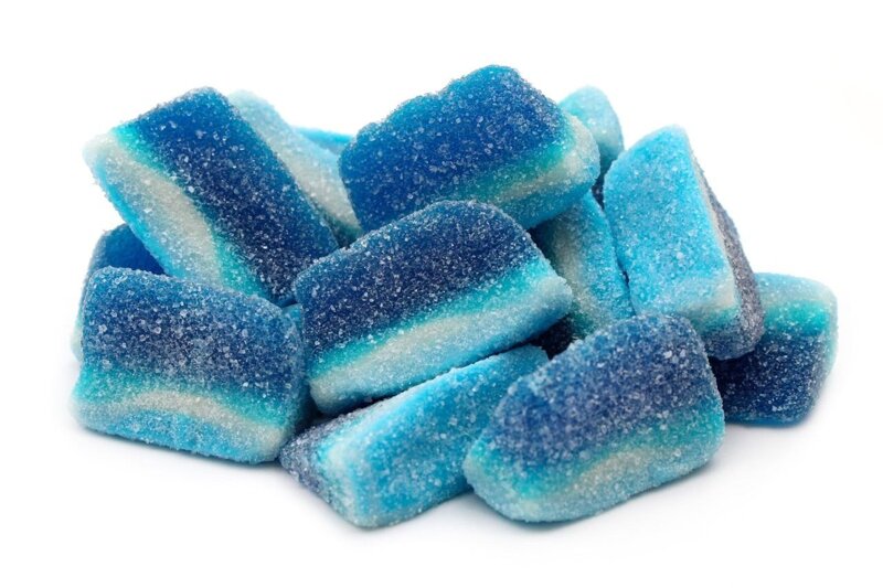 Fette di Lamponi Blu Acide caramelle gommose zuccherate frizzanti a forma di spicchio gusto lampone sour. Caramelle gommose sfuse in sacchetto da 100gr . Ideali per pick and mix, sweet table, candy box, dolci creazioni e regalini di fine festa. Senza glutine.
