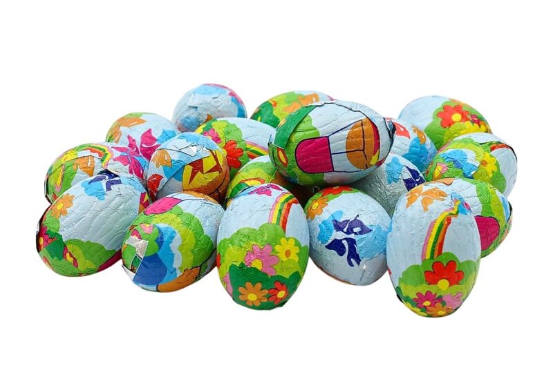 sono dei golosi e colorati ovetti di cioccolato al latte con ripieno cremoso alla nocciola dal peso di 10g. La fantasia della stagnola è su fondo azzurro cielo con decori che richiamano la primavera (mongolfiere, farfalle, coniglietti, etc). Disponibili all'acquisto sfuso in sacchetto da 0,300g, questi ovetti sono perfetti come dono di Pasqua per deliziare grandi e piccini.
