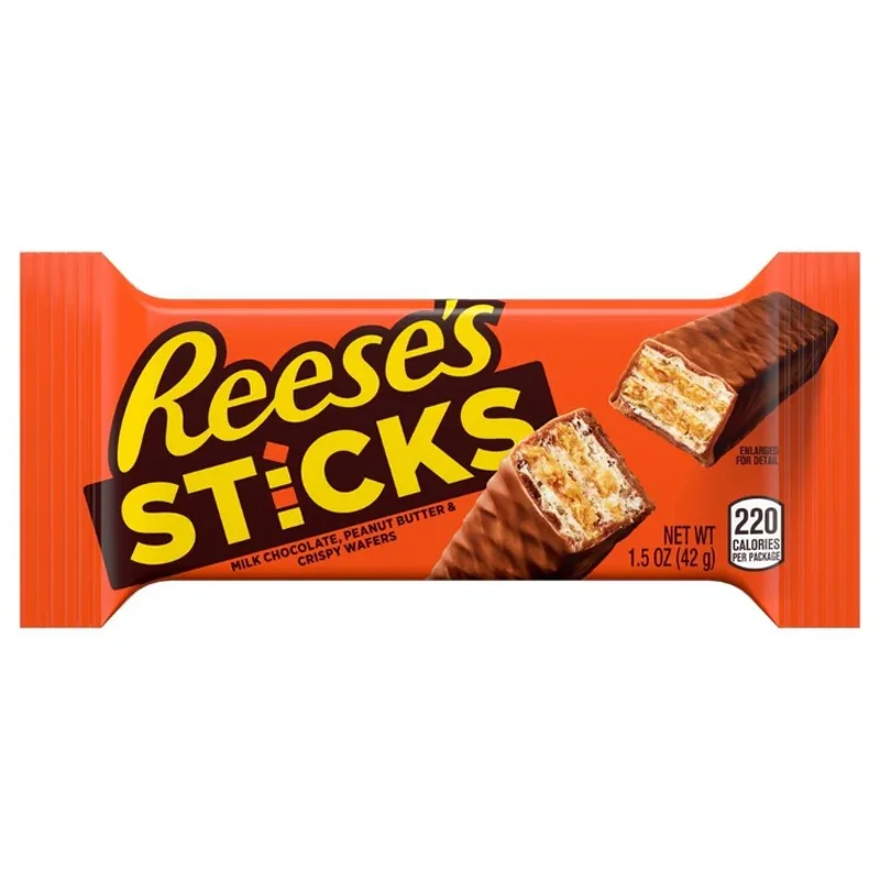Wafer al cioccolato ripieni di burro d’arachidi dall'inconfondibile sapore Reese’s, 100% originali americani. Un must per chi ama il gusto dolce e salato del burro d'arachidi, tipico dei prodotti Reese’s. Ideali da includere nel tuo assortimento per attrarre gli appassionati di snack autentici americani.