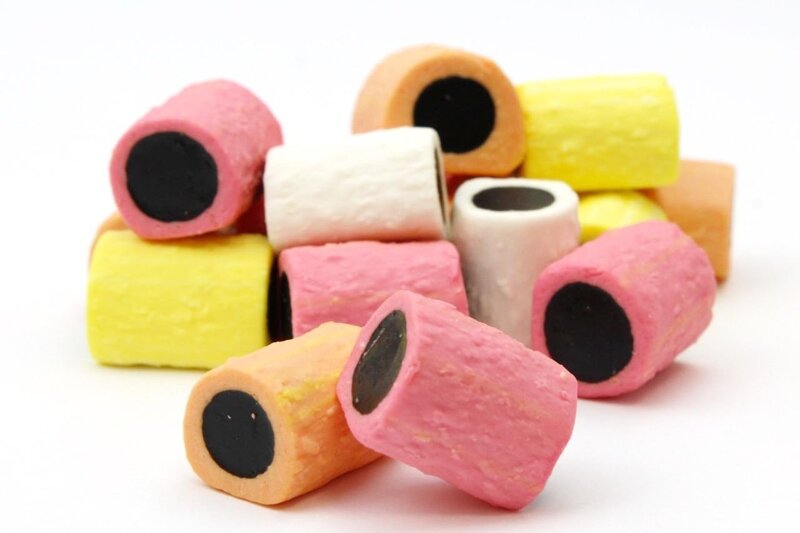 Tronkito Mix tubetti di farcitura colorata assortita ai gusti assortiti che ricoprono un blocchetto di liquirizia mobida e gustosa sfusa in confezione da gr 100 .